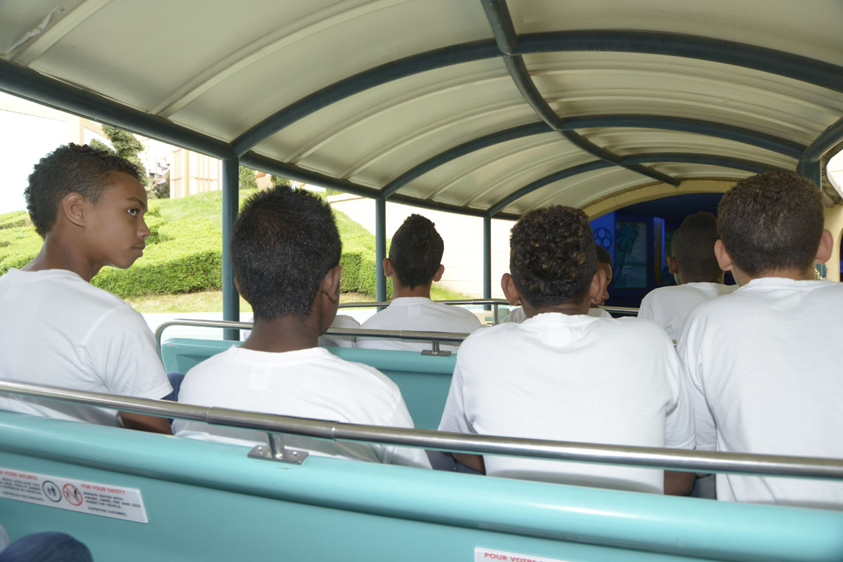C'est Binta N'Diaje, une jeune Mauritanienne immigrée en France et « Disney voluntEARS » qui vient à la rencontre du groupe de Réunionnais. Les présentations faites, elle invite les marmailles à accéder au site. Une fois à l'intérieur, elle est rejointe part Charlotte Robillard, chargée de communication au sein de Disney Paris. Les deux jeunes femmes vont accompagner les VIM tout au long de la journée et leur faire découvrir tous la « magie » du parc ». Une première surprise attend nos neuf petits saint-paulois. Ils reçoivent chacun la reproduction exacte de Stitch, le héros du dessin animé du même nom.