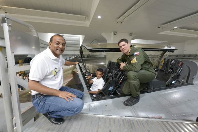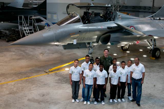 A la sortie d'un déjeuner à la table du Commandant de la Base, le Colonel Jérôme Bellanger en personne qui s'est rappelé au bon souvenir de l'île (il a été souvent en visite pour voir sa famille basée à l'Entre-Deux), les petits privilégiés vont s'émerveiller face et même à l'intérieur du fleuron de l'armée de l'air, la technologique de pointe : le Rafale. La BA 114 en regroupe une cinquantaine ayant pour mission de participer à la protection de l’espace aérien nation al 24h/24 et 365 jours par an.