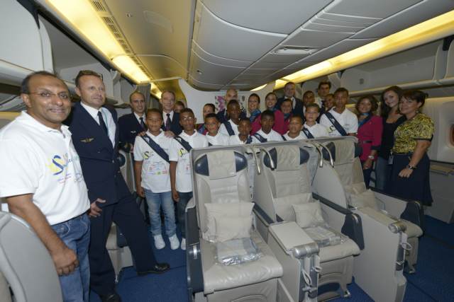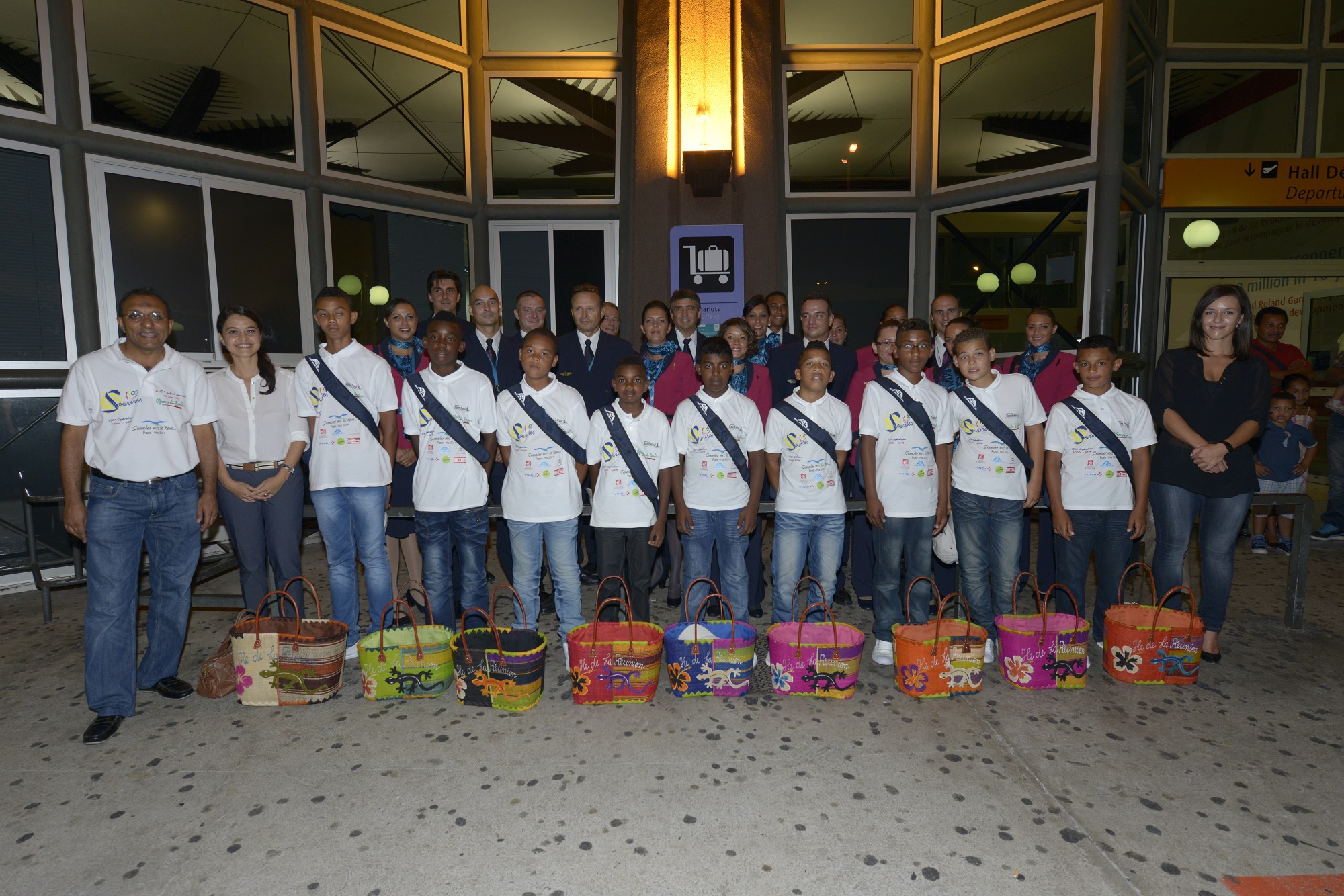 19h30. C'est l'embarquement à bord du vol d'Air Austral à destination de Paris. Des surprises attendent encore les 9 petits saint-paulois. Reçus comme de véritables VIM par le personnel de bord, ils ont droit à une séance photo en classe affaires avant de gagner leur siège.