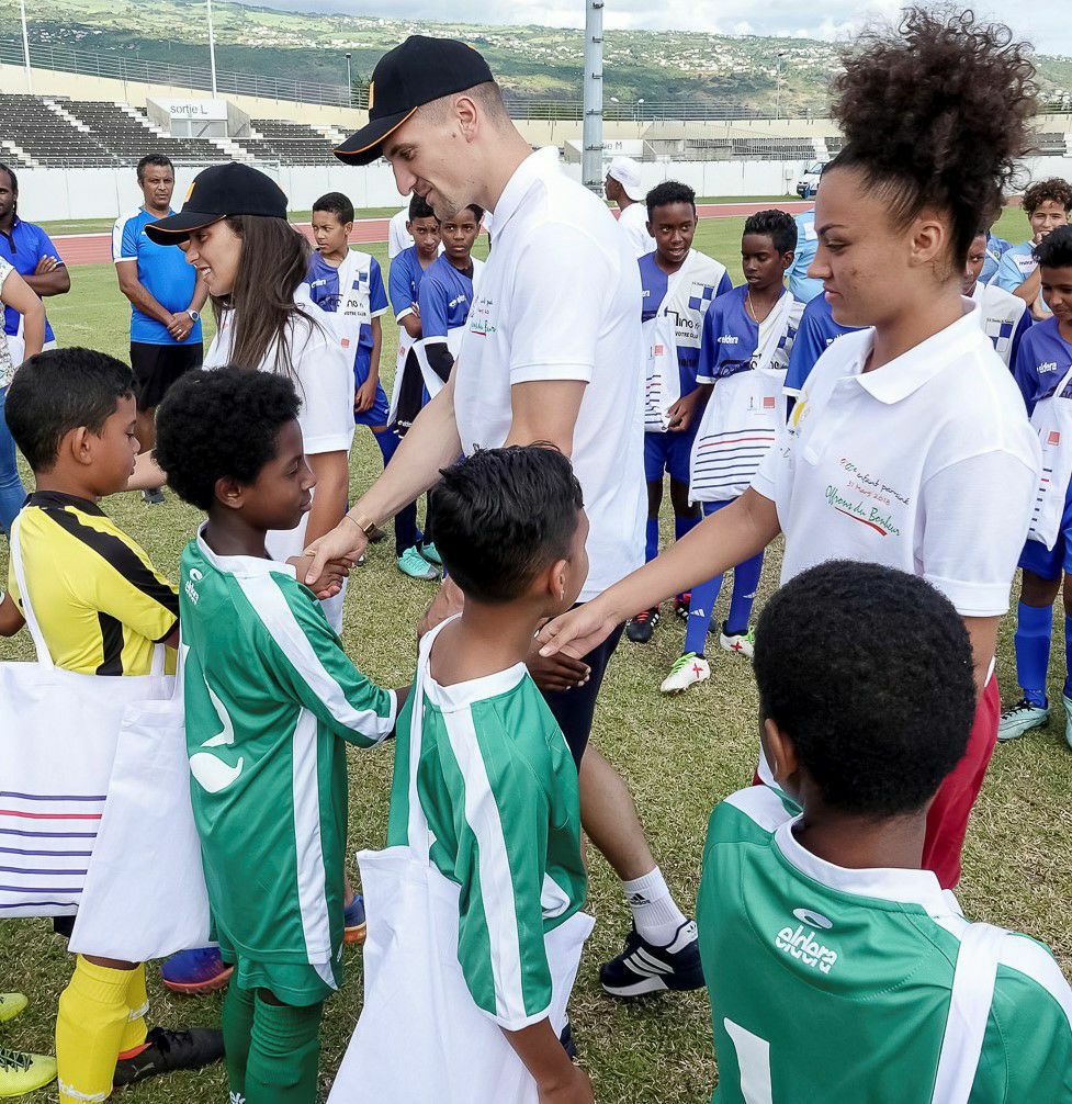 C’est là qu’ils ont pu rencontrer trois joueurs spécialement venus à La Réunion pour eux: Thomas Meunier (PSG), Anissa Lahmari (PSG) et Maéva Salomon (OM). Les trois parrains et marraines de l’opération étaient accompagnés de Fabrice Abriel, ex-footballeur professionnel et parrain de l’association depuis 2010.