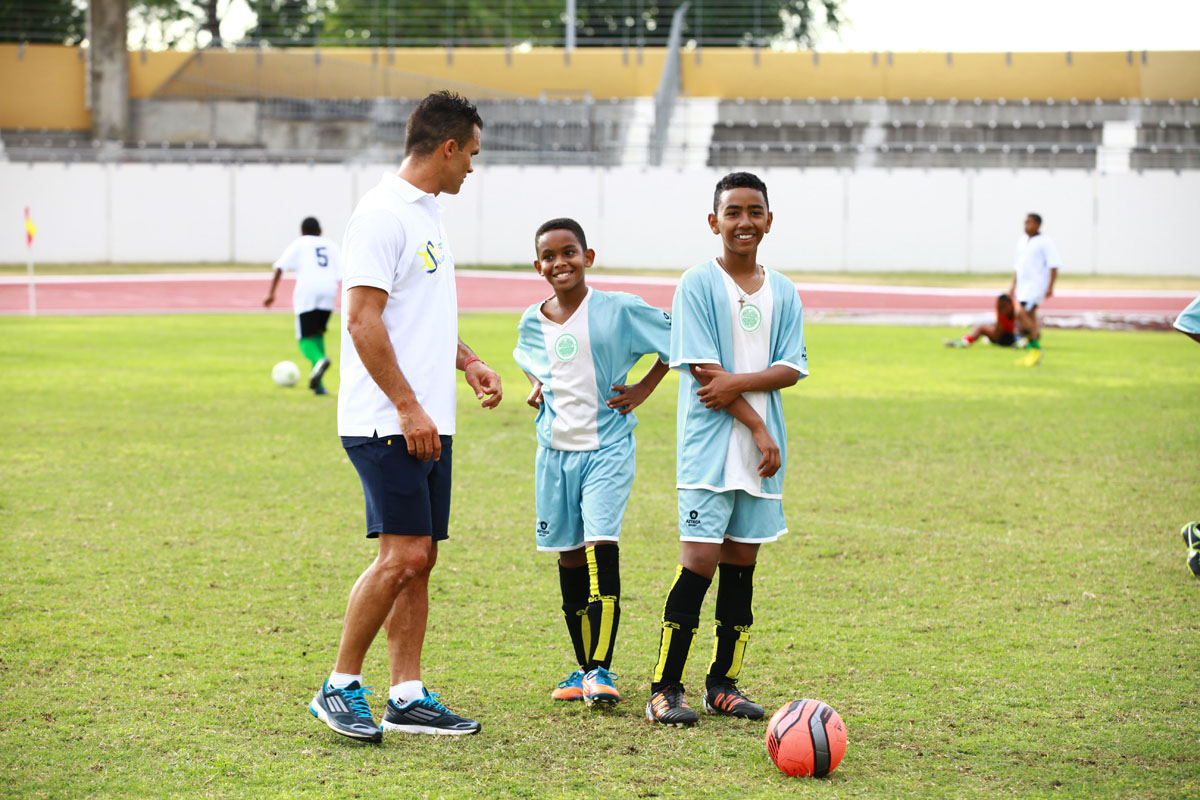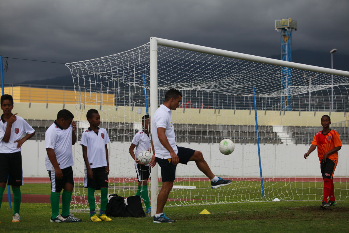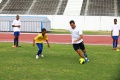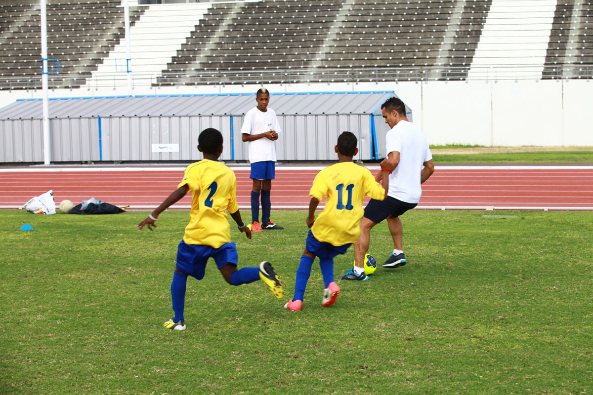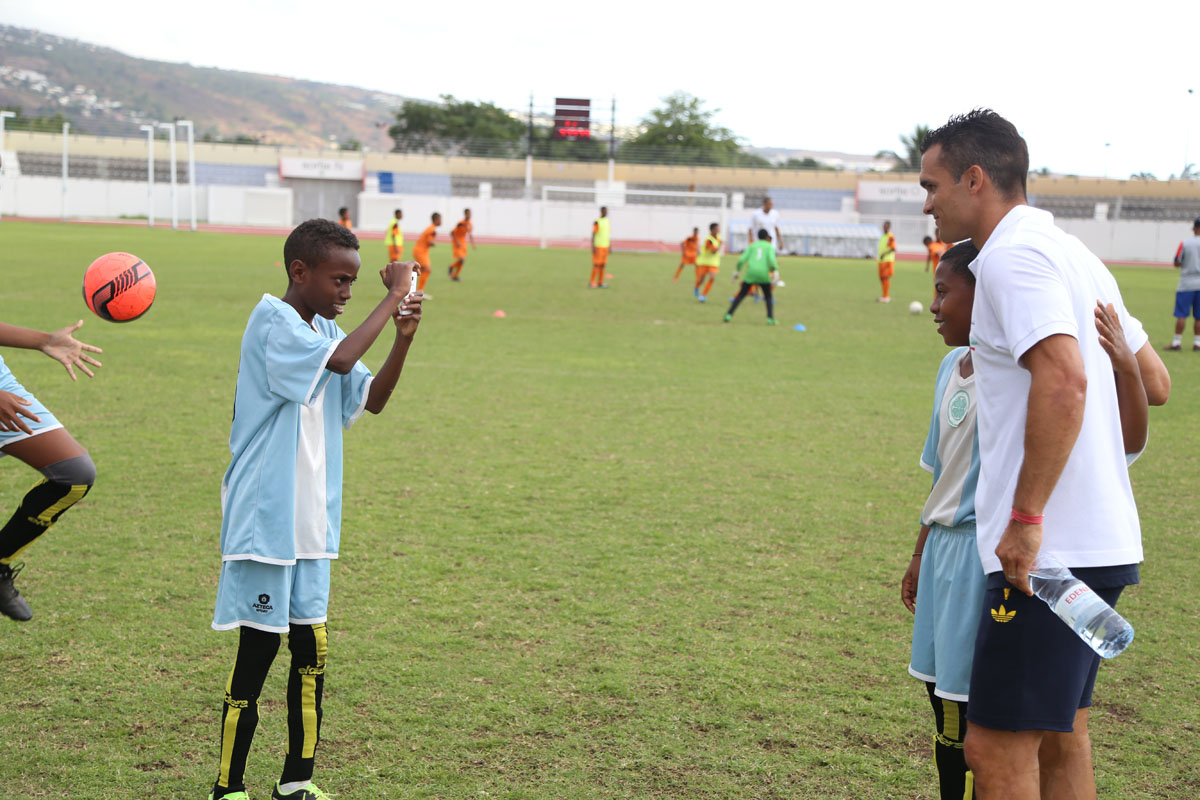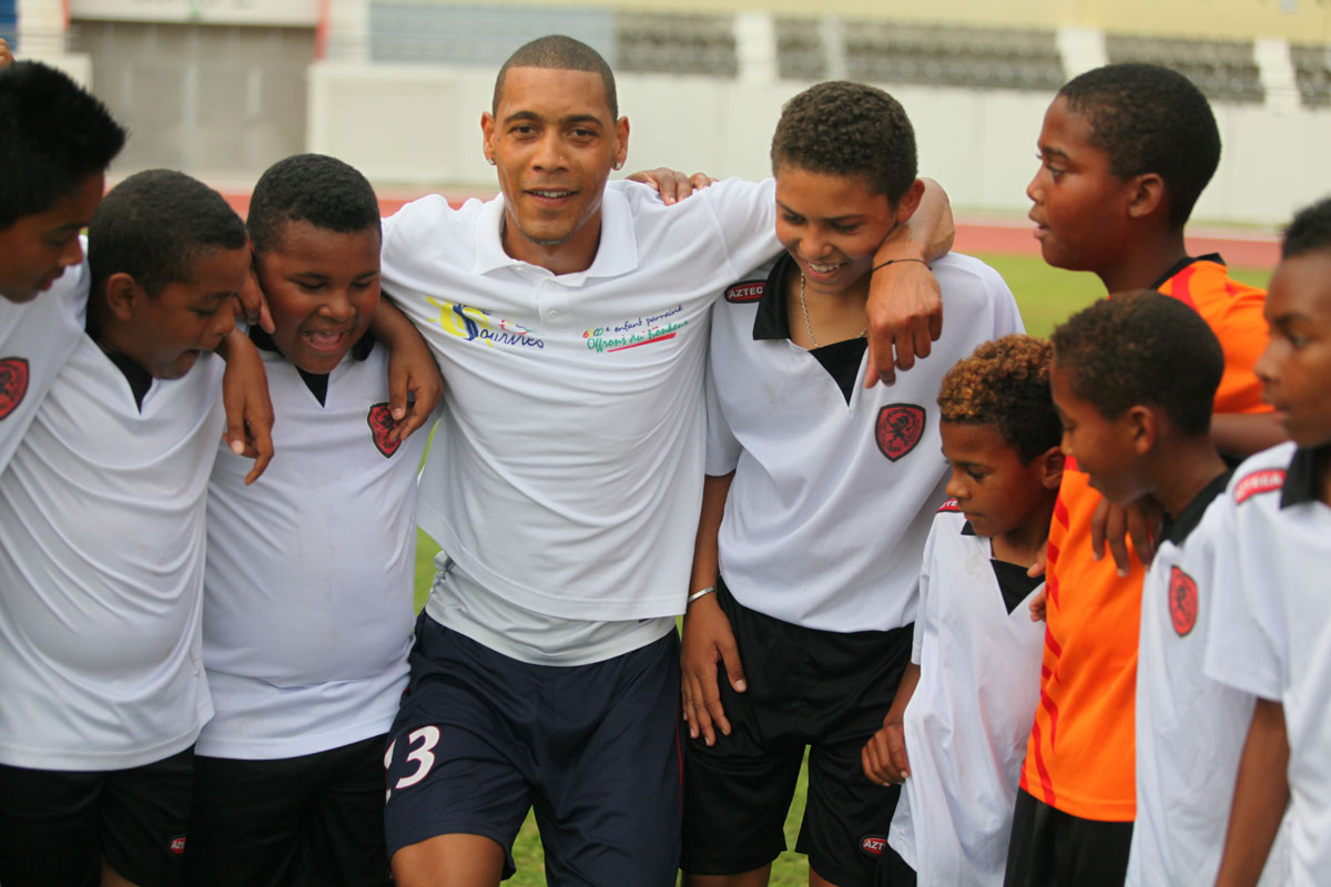 Sous les yeux du président de la Ligue Réunionnnaise de Football Yves Ethève, du maire passionné du ballon rond Joseph Sinimalé et de son délégué aux sports Thierry Martineau, ils vont échanger, rigoler et même se mesurer à deux joueurs de la Ligue 1. Comme au commencement de l'opération en 2009, Guillaume Hoarau est de la partie. A ses côtés, Jérémy Morel est heureux d'emboîter le pas des kréopolitains, Fabrice Abriel, Benoît Trémoulinas, Dimitri Payet, Vincent Acapandié, William Gros, Zacharie Boucher, Christophe Mandanne et Florent Zitte. "C'est important pour nous footballeurs professionnels, de passer du temps avec les enfants, déclare le défenseur de l'Olympique de Marseille. Encore plus lorsque ce sont des marmailles de chez moi. Dès que je peux leur apporter un peu de bonheur, je n'hésite pas."