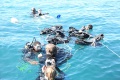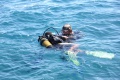 L’équipe de 1000 Sourires et du CRTH.OI accompagnés de Miss Réunion ont ensuite pris la mer à bord de deux bateaux de plongée depuis le Club Bleu Marine Réunion. Une fois arrivés sur zone, juste derrière la barrière de corail au large de Saint Gilles, ils se sont mis à l’eau par groupes de trois, chacun encadrés individuellement par un moniteur pour une immersion de près de 25 minutes entre trois et six mètres de profondeur et ceci dans un cadre de pratique pour la plongée Cadet élaborée par la Fédération Française d’Etudes et de Sport Sous-marins.