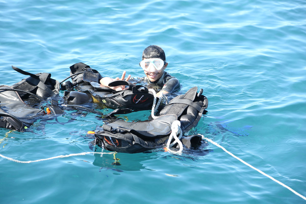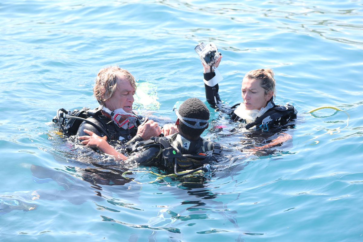 Accueilli à la marina de Saint Gilles les Bains par Yves Reignier, responsable du centre de plongée Bleu Marine Réunion et toute son équipe, les récents jeunes plongeurs se sont familiarisés avec l’équipement nécessaire à la pratique de ce sport et ont reçu une petite instruction préalable à l’immersion.