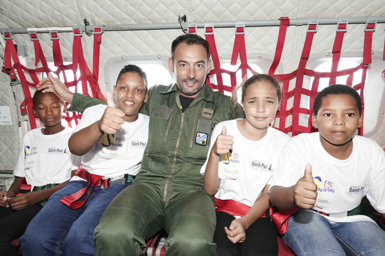“Vous n’allez pas que rentrer dans l’avion, nous allons même le démarrer et le faire décoller pour que vous puissiez voir La Réunion d’en haut”, annonce fièrement lieutenant-colonel Henri de Boisseson, commandant du Détachement Air 181, aux enfants qui restent bouche bée. Et ce n’est que le début des surprises : avant de grimper à bord, les marmailles voient débarquer leur deuxième cadeau : Audrey Chane Pao Kan. La Miss Réunion 2017, marraine de l’association, est venue spécialement pour partager ce moment avec les enfants. “Vous allez en prendre plein les yeux, promet Audrey Chane Pao Kan. Je suis vraiment heureuse de pouvoir vivre ce moment exceptionnel avec vous.”