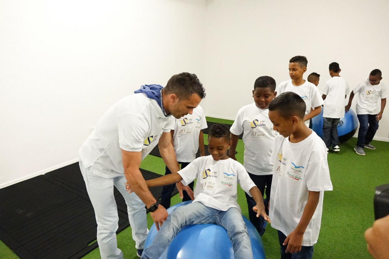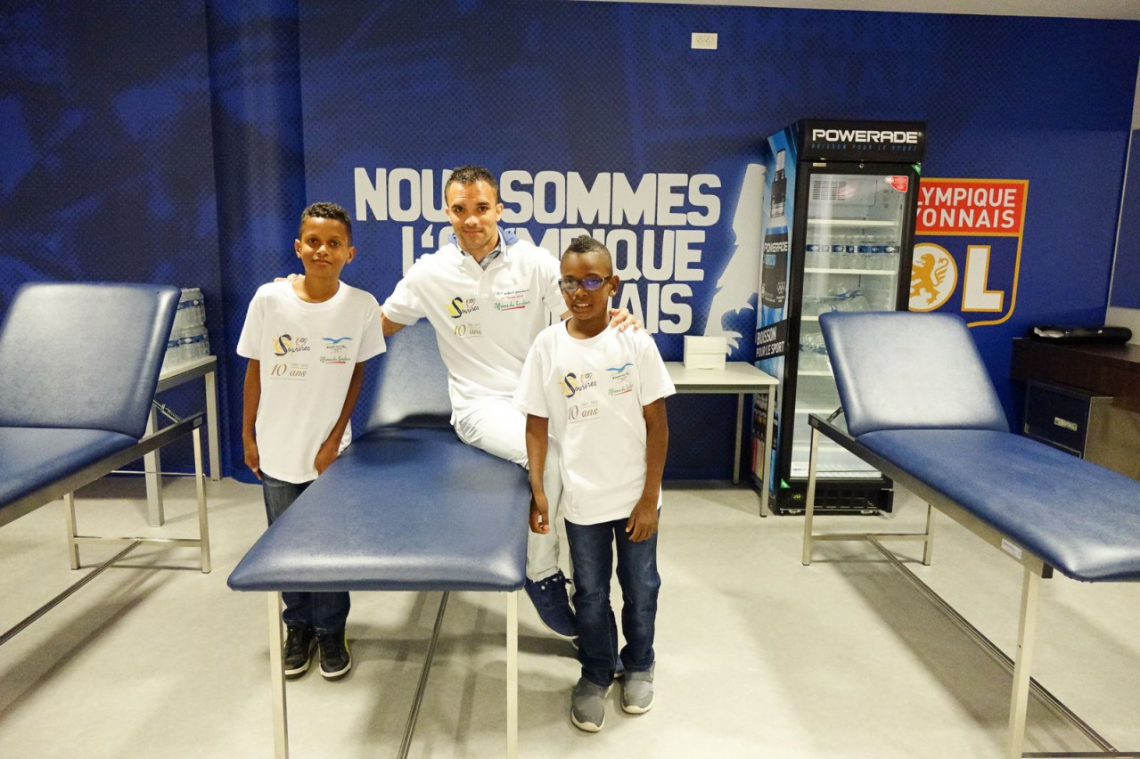 A ses côtés, le sympathique Nicolas de la Communication de l'OL, a pu s'appuyer sur de véritables experts des lieux pour guider les petits réunionnais dans les entrailles du Grand Stade de Décines. Parrain de l'Association depuis 2013, Jérémy Morel a été rejoint par Christophe Jallet, son partenaire de club qui a aussi été parrain de 1000 Sourires à l'époque où il évoluait au PSG.