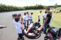 Dès leur arrivée, les enfants ont démarré l’atelier karting sur le circuit Félix Guichard, agréé école française de karting. Trois équipes ont été constituées pour débuter le challenge sportif. Après les explications des trois animateurs, Samuel, Jimmy et Robin, même les plus réticents ont enfilé leur casque et leur minerve, pour piloter leur kart en toute sécurité. Sorya, par exemple, ne voulait pas conduire… et puis elle s’est laissée convaincre. “J’avais peur mais le monsieur du circuit est venu me voir pour m’aider. Alors j’ai commencé à rouler, et puis ça allait. Je me suis bien amusée”, raconte la petite fille, qui ne regrette pas d’avoir vaincu sa peur. Les premières minutes, il y a bien eu quelques coups de freins un peu brusques et des collisions pare-chocs contre pare-chocs, façon auto-tamponneuses. Mais très vite, les pilotes en herbe ont gagné en agilité et en vitesse.