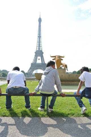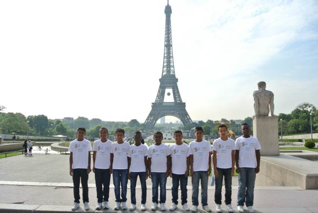 MERCREDI 27 MAI 2015 - Les enfants de la 167e opération de 1000 Sourires ne pouvaient pas retourner dans l'île sans faire un détour par le symbole de la capitale française. Venus de Guillaume et de Bellemène, les marmailles ont traversé la célèbre place du Trocadéro jusqu'au Champ de Mars, fasciné par la tour de 324 mètres de hauteur. Les voilà au pied de la Tour Eiffel, qu'ils ont vu et touché.
