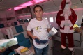 Dernier moment de découverte : les enfants ont été invités dans les « galets » de l’appareil, pour découvrir les endroits où l’équipage prépare les repas des passagers. D’ailleurs, les enfants se sont installés en classe Club pour un goûter en VIM. Ils se sont régalés en dégustant des petits macarons aux couleurs de la compagnie. Puis c’était l’heure de la dernière surprise : le Père Noël est venu prendre le goûter avec eux. Et il est venu les bras chargés de cadeaux. Dans sa hotte, il a apporté des maquettes d’avion, que les marmailles se sont empressés de commencer à monter. « Ce sont des présents avant l’heure, mais soyez sages pour avoir le reste de vos cadeaux à Noël », les prévient-il. « C’était vraiment génial, c’était ma première fois dans un avion, c’est comme si c’était déjà le jour de Noël », confie Maëlly.