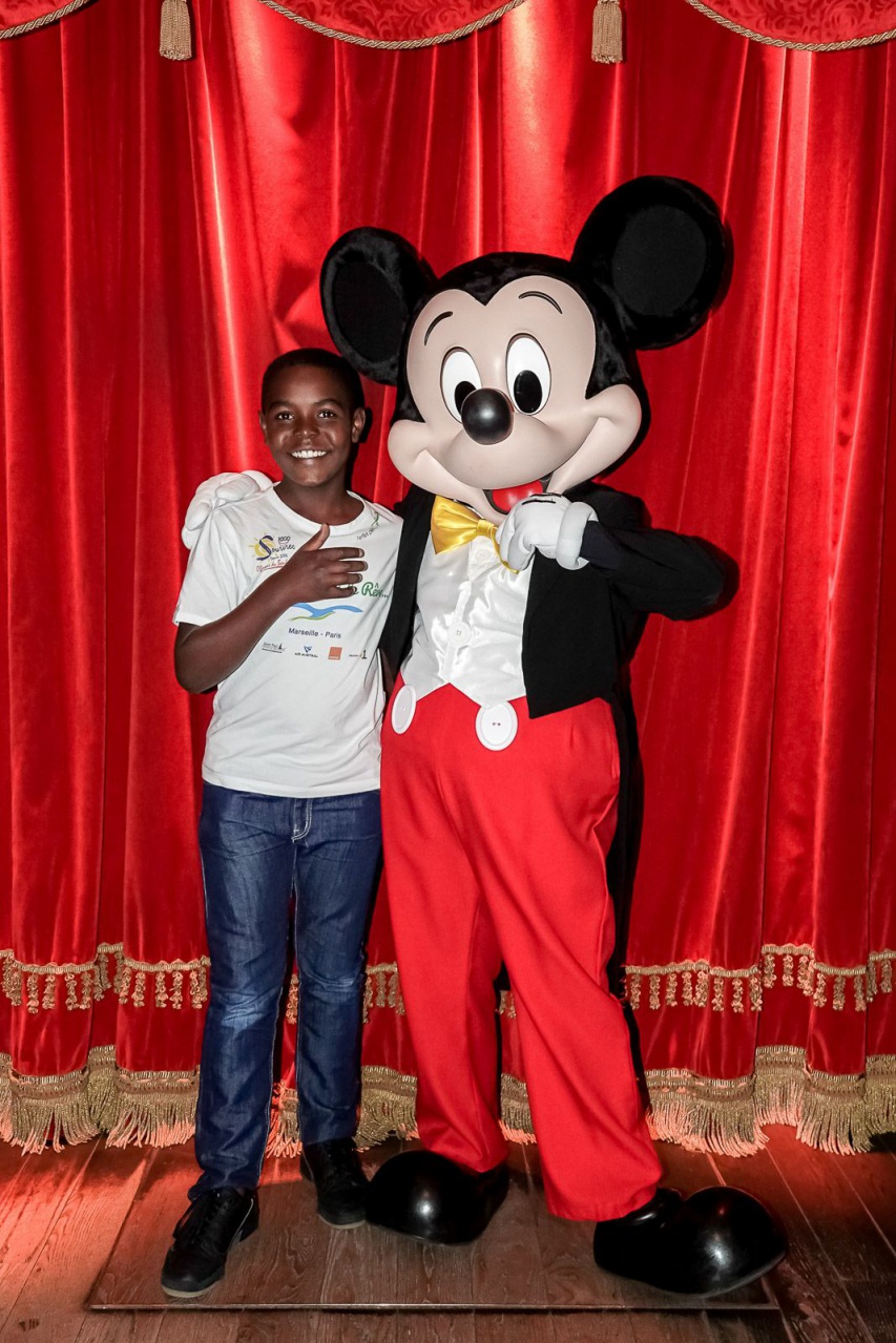 A l’intérieur du parc, ils sont accueillis par Eric Pires Augère du Service Action Citoyenne (RSE) Disneyland Paris, Giona Prevete, Ambassadeur Disneyland Paris et le chef réunionnais Ludovic Maillac. Le Saint-Andréen, qui travaille chez Mickey depuis 18 ans, était ravi d’évoquer son parcours avec les petits saint-paulois. Les enfants ont pu découvrir le magnifique restaurant dans lequel il travaille, le Walt’s. Ce restaurant haut de gamme, met à l’honneur les 5 thèmes du parc, tous cher à Walt Disney. Les enfants découvrent le hall d’entrée au rez-de-chaussée, qui est un hommage à Walt Disney. Ils admirent les photographies d’archives, les plaques commémoratives ou encore le buste à l’effigie du créateur des studios Disney.