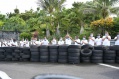 Après cette matinée pluvieuse, les marmailles ont eu la surprise de voir le soleil pointer le bout de son nez en même temps que les champions de rallye de la Réunion.